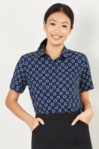 Womens Easy Stretch Daisy Print Short Sleeve Shirt